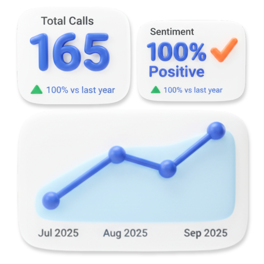 We implemented AI employees less than 2 months ago for one of our Real Estate clients. Since then, they've recovered 165 missed calls and have had a 100% customer sentiment rate.